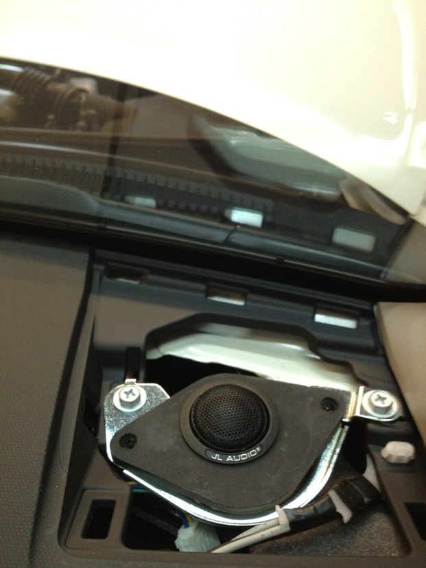 Pictures top to bottom: All pictures were taken while installing new JL Audio C5-650 speakers into a 2012 Toyota 4Runner. The top picture shows the factory 6×9 in the front passenger door. Next is a picture of the factory 4″ tweeter in the dash. Third, is the factory 6×9″ speaker and factory tweeter at the routing table along side the replacement adapters and mounting rings. Fourth, the new 6.5″ JL Audio mid driver installed in the same door. Last, the JL Audio companion tweeter mounted in the dash.